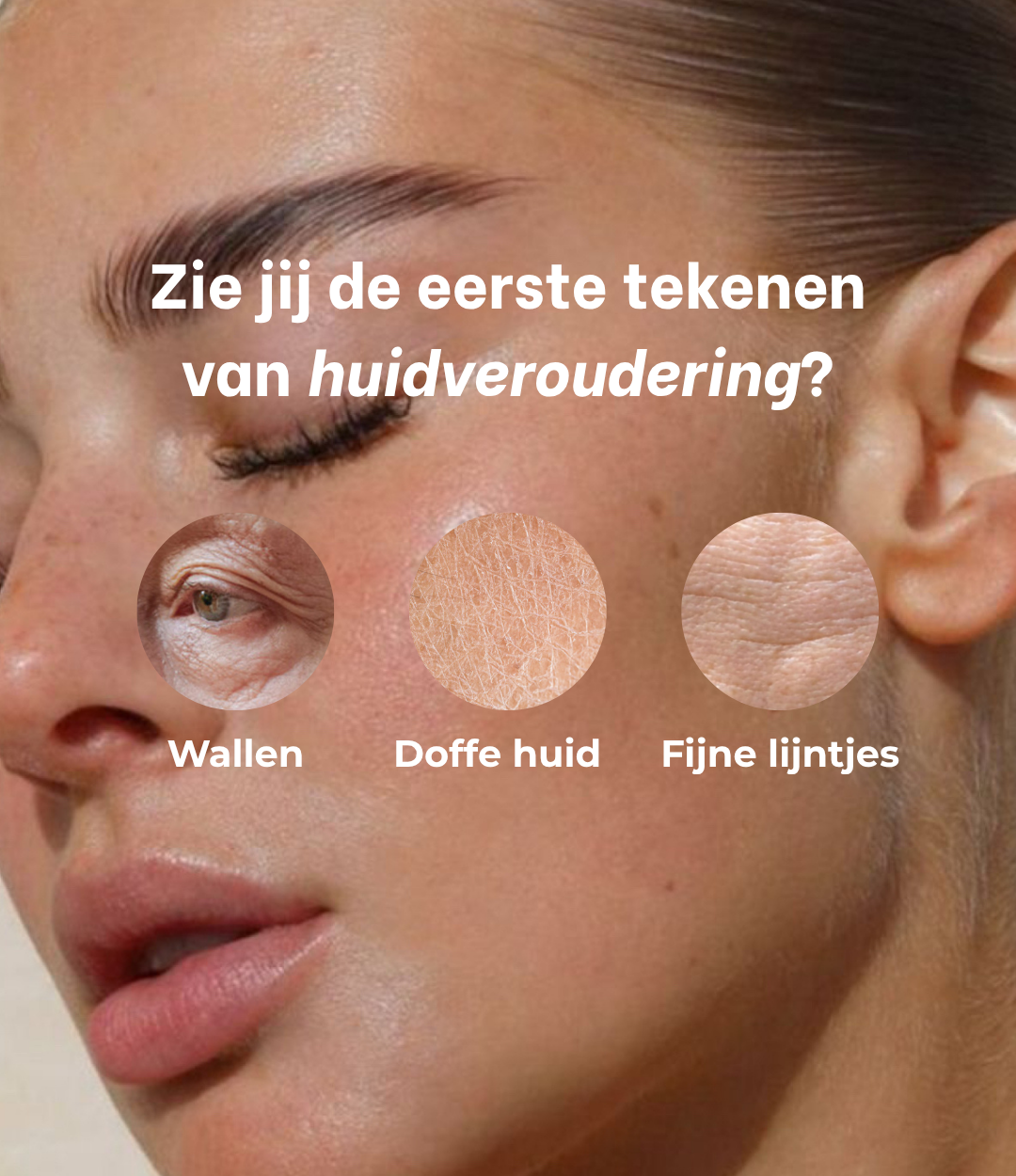 Daardoor verliest je huid geleidelijk haar volume en natuurlijke glow, en worden de eerste tekenen van huidveroudering zichtbaar.